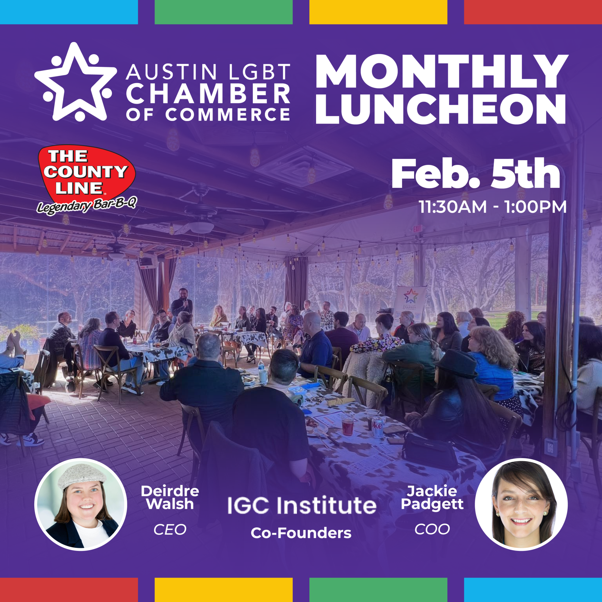 Join the Austin LGBT Chamber of Commerce for our Monthly Chamber Luncheon at County Line on the Lake!