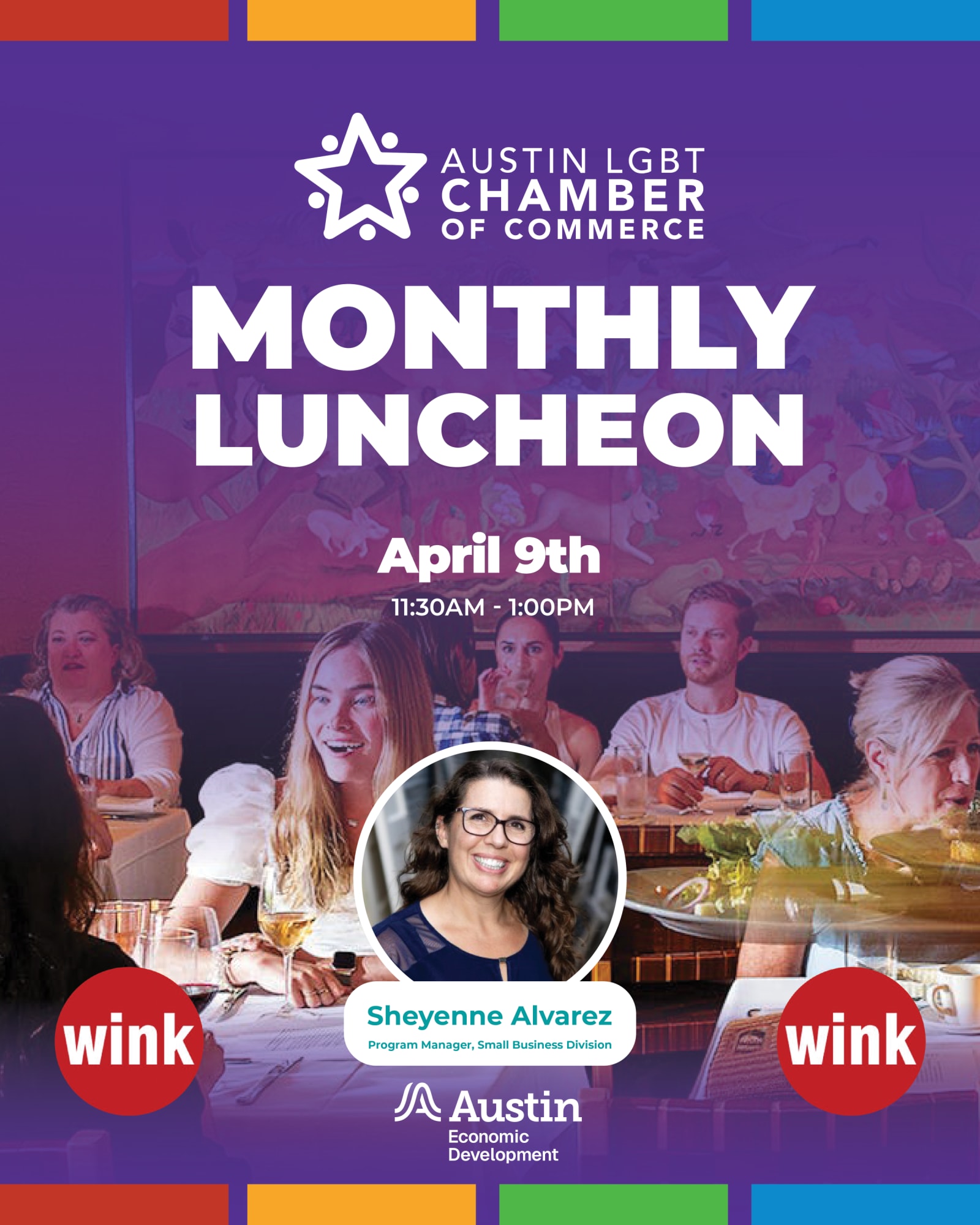 Join the Austin LGBT Chamber of Commerce on April 9th at Wink for our Monthly Chamber Luncheon. We’re excited to welcome Sheyenne Alvarez, Program Manager with the City of Austin’s Small Business Division, who will share insights on Austin becoming Kiva’s newest hub—expanding access to crowdfunded small business loans and alternative funding opportunities—alongside key local resources available to entrepreneurs.