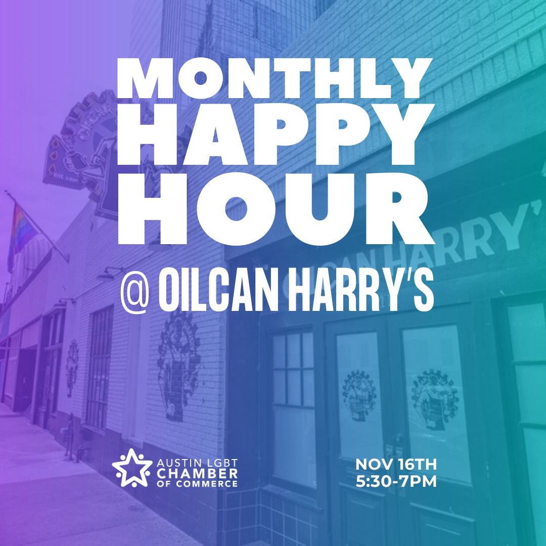 Join us for our November Happy Hour! Support a member business, network with other members, and bring your friends! Our Happy Hours are open to the public. The location has moved! We'll see you at Oilcan Harry's!