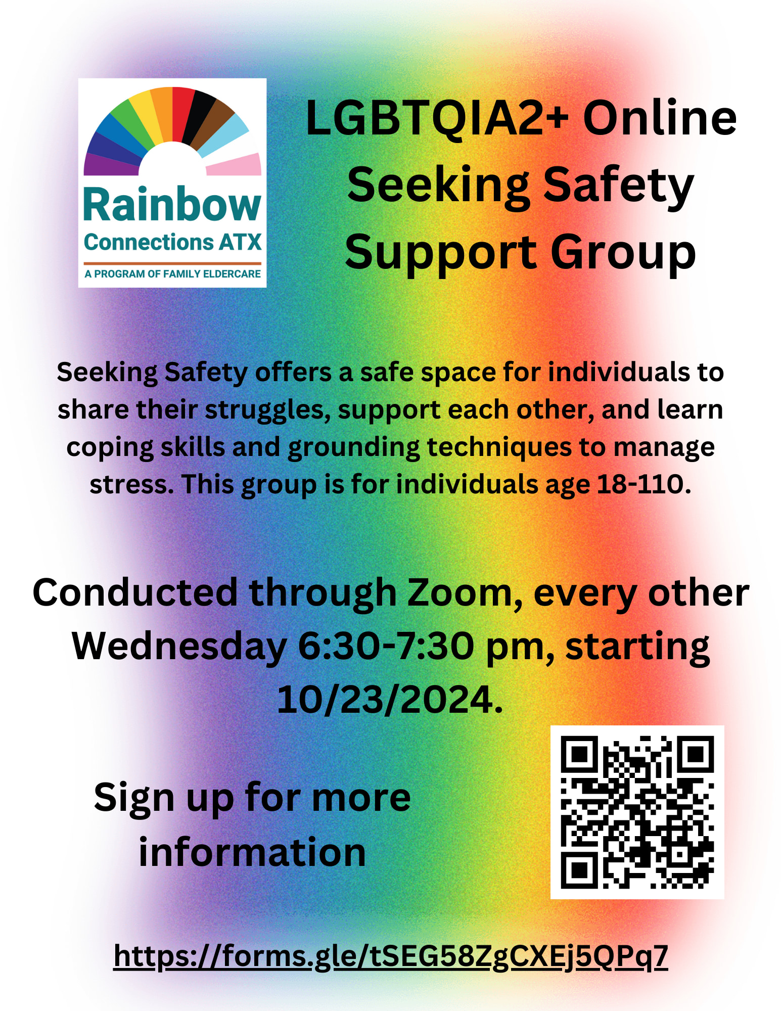 Seeking Safety offers a safe space for individuals to share their struggles, support each other, and learn coping skills and grounding techniques to manage stress. This group is for individuals aged 18-110.