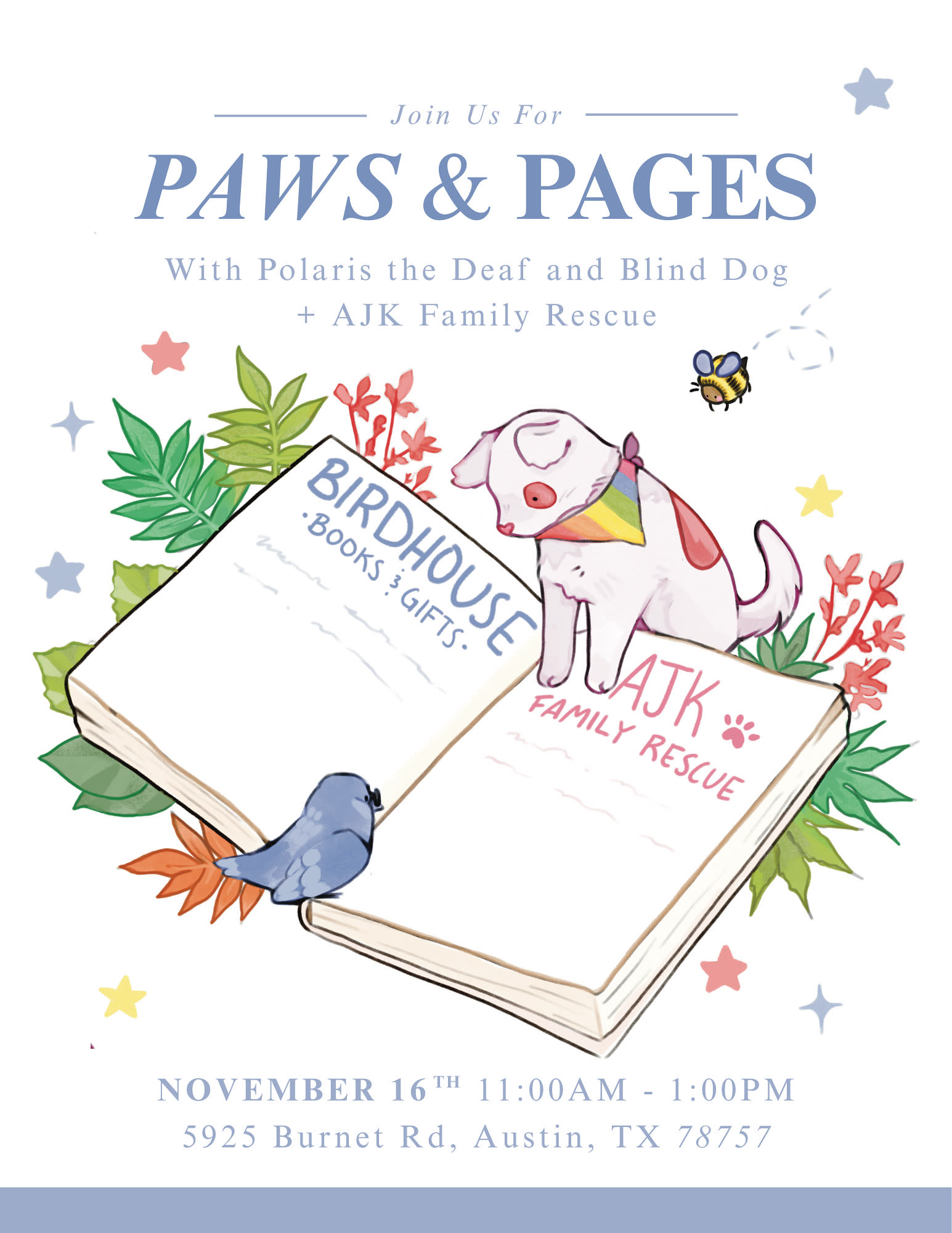 🎉Join us for Paws & Pages with Polaris the Deaf Blind Dog!
